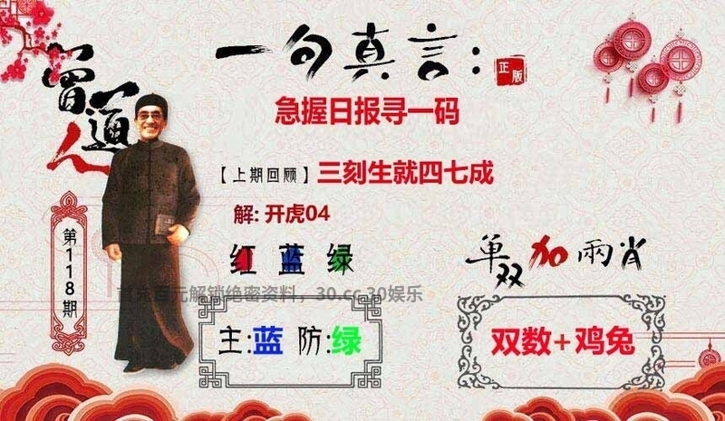 117期港彩特码玄机开:虎04 一句真言:三刻生就四七成